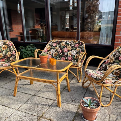 Rottingsoffa med tillhörande dynor