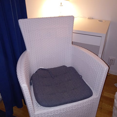 Plastrottingsoffa från Ikea med tillhörande fot/sittpallar. Tvättbar klädsel.