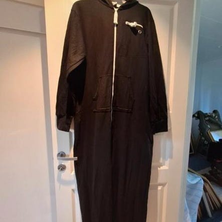 Svart onepiece original strl 134. Svart med klarblåa detaljer. Hel och ren men använd.