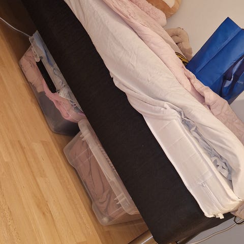 Sänggavel,sängram,tjocka resormadrassen och 1 bäddmadrass.