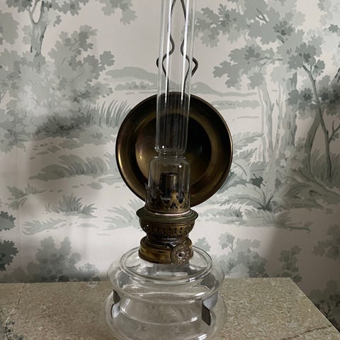 Finns en nagg/skada i skärmen och någon typ av veke ligger i behållaren där jag tror att man har i lampoljan.