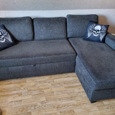 Fin bäddsoffa från 1940-talet. Välbevarat tyg. Tyget till sängarna är dock ankommer. Se bilder. Måtten är inte exakta utan uppskattade utifrån minnet. En person som är 180 cm får plats att ligga i sängarna. Soffan avhämtas i Karintorp utanför Åsbro.