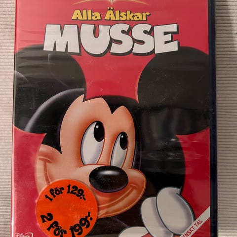 Disney Musse Kalle Långben De tre musketörerna DVD. Animerad familjefilm där Musse Pigg, Kalle Anka och Långben spelar huvudrollerna i en version av De tre musketörerna. Utgåvan är på DVD med speltid cirka 65 minuter. Baksidan anger ljudspår på flera språk, bland annat svenska, samt textning på flera språk. Förpackningen består av plastfodral med tryckt omslag och en DVD-skiva inuti. Aldrig spelad