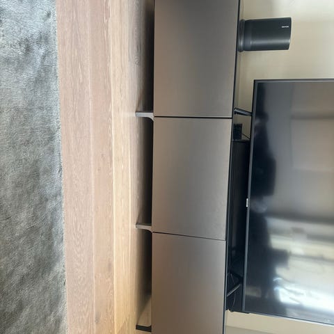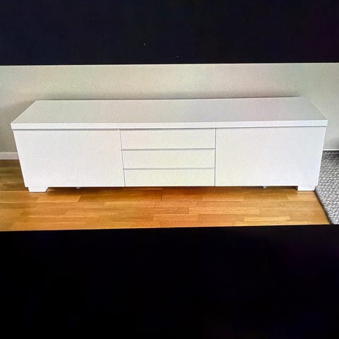 Säljer min TV bänk från ikea. Går att hänga upp på väggen eller skruva på ben om man vill ha den högre.