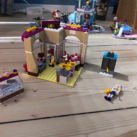 Inte helt komplett, tex saknas figurerna. Modellen ger chans till mycket lek i de olika affärerna och den fungerande rulltrappan.