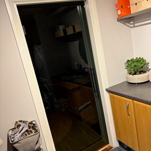 Glasdörr inklusive väggbeslag som på bild, men smalare.