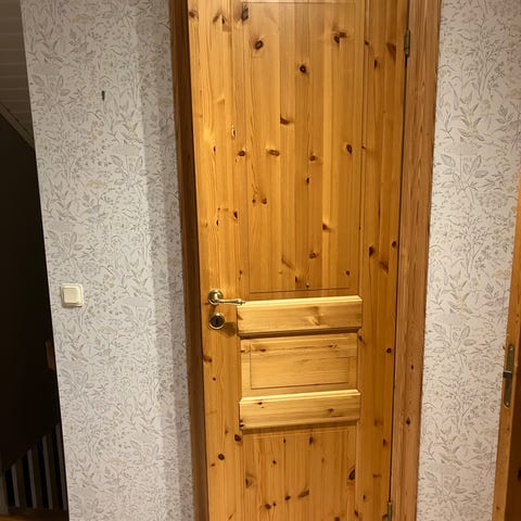 Massiv badrumsdörr med hål i nederkant för ventilation (1500 kr)