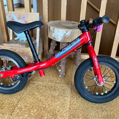 Balanscykel för barn med 12" hjul i turkos färg. Cykeln har svart sadel och svarta hjul med plastskärmar fram och bak. Lämplig som första cykel för att öva balans och koordination innan övergång till trampcykel.