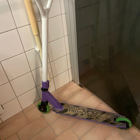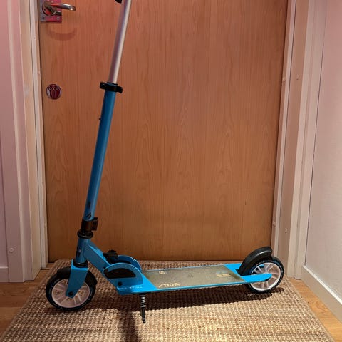 Vit Stiga sparkcykel (kickbike) i fint skick. Den har ett flertal justeringsmöjligheter som gör att det är lätt att anpassa den efter barnets storlek. Den har fotbroms på bakhjulet och halkskyddad ståplattan. En toppenbra kickbike!