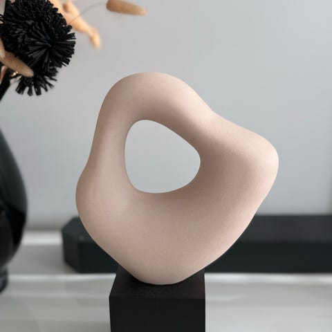 Dekorativ skulptur i form av ett stiliserat huvud i vit färg på svart fot. Skulpturen har ett enkelt linjemotiv med öga, näsa och mun på framsidan. Passar som inredningsdetalj i exempelvis vardagsrum, sovrum eller hall. Ytan är matt och lätt strukturerad. Skulpturen står fristående på sin rektangulära bas.