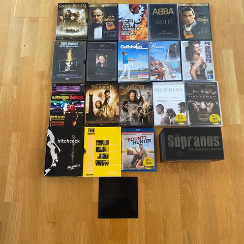 Paket med 45 stycken DVD-filmer. Flera olika titlar och genrer, både i originalfodral och i lösa plastfickor. Passar för den som vill utöka sin filmsamling med varierade filmer på DVD-format.