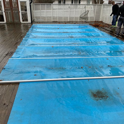 Poolskydd typ bar-cover som vi använde innan vårt glastak kom.