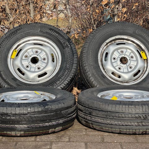 Fina sommardäck på original VW-plåtfälgar inkl. hjulsidor.