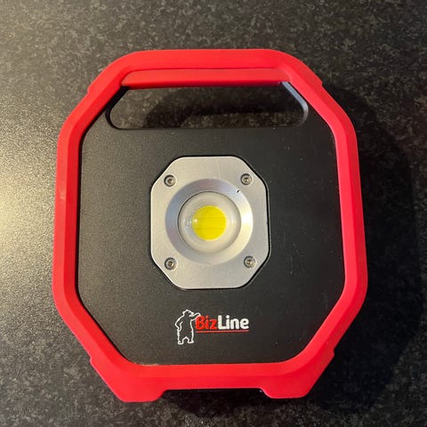AC Collection arbetslampa med kvadratisk ljusyta. Portabel modell med bärhandtag upptill och skyddande hölje i plast. Lämplig för belysning vid arbete inomhus eller utomhus, exempelvis i garage, verkstad eller på byggarbetsplats.