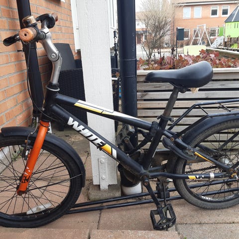 Barncykei storlek med 20" hjul, unisexmodell. Cykeln har kedjedrift och fotbroms bak.
