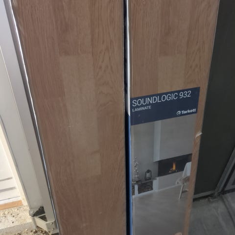 Begagnat laminatgolv (tarkett) grå ek 1292x194x10 mm