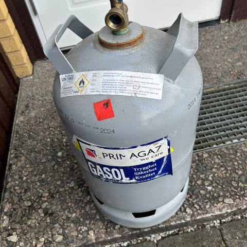 P11 Gasoltub i stål – nyfylld idag 22/3 – kappa ingår