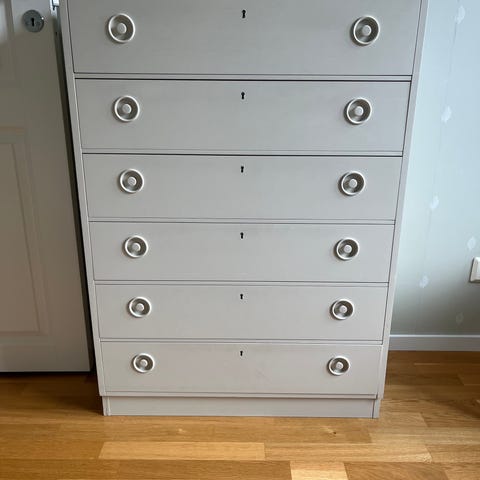 Säljer denna ikoniska byrå designad av Tomas Jelinek för IKEA på 90-talet. Byrån är i bra använt skick. Mindre ytliga spår av användning finns, vilket är normalt för ålder och inget som stör helheten.