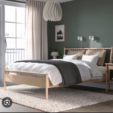 Fin sängram i massivt furu från Norrmann Copenhagen, säljes pga flytt. Ramen köptes i januari och är väldigt ny och välvårdad. Ribbotten (ej med på bild) från IKEA följer med på köpet.