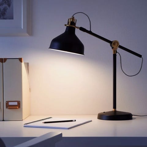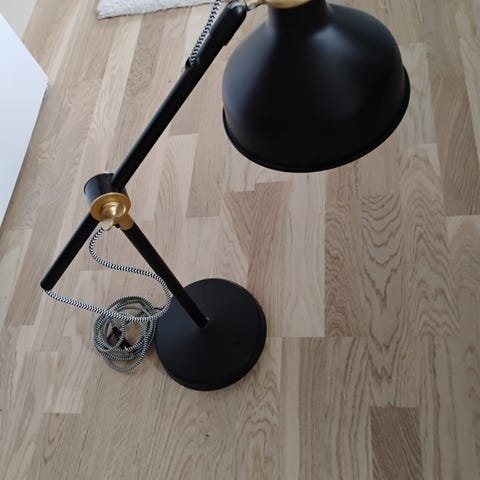 Svart med mässingsdetaljer, funkar utmärk. Ljuskälla ingår 💡