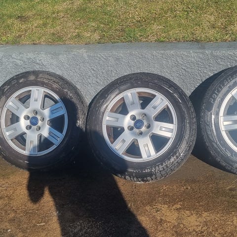 Sommardäck med bra mönster. Orginal Ford fälgar men haft dem på min Volvo S40 (06:a).