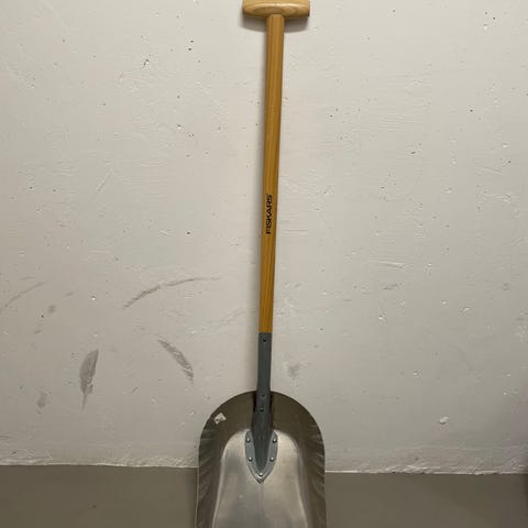 Fiskars snöskyffel i metall med plastskaft och D-handtag. Skyffeln är avsedd för snöröjning på uppfart, gångar och andra ytor. Skaftet är rakt med greppvänligt handtag för enklare hantering vid skottning.
