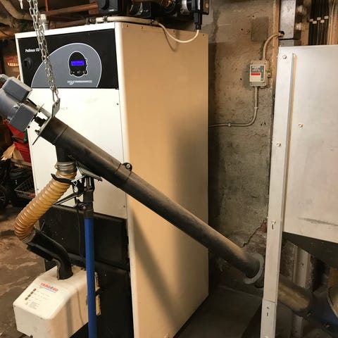 Pelletspanna med pelletsbrännare och pelletsförråd