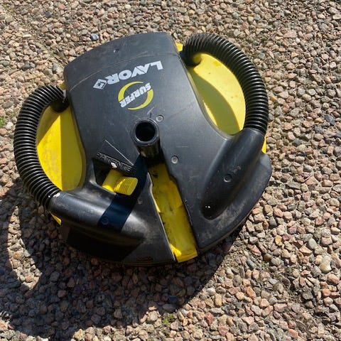 Kärchers altantvätt som även passar Nilfisk Alto om man använder en adapter som man kan få med om man vill. Rund gul borstdel med handtag och långt skaft med skumgrepp. Avsedd för rengöring av till exempel trall, altan och andra plana utomhusytor. Sparsamt använd och i mycket gott skick.