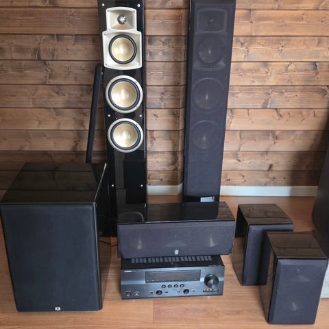 Säljer ett komplett och välspelande hemmabiosystem med kvalitetsljud från Bowers & Wilkins tillsammans med en stabil Denon AVR-1906 receiver.