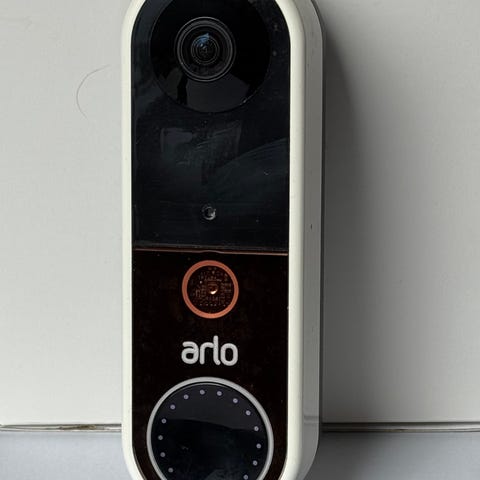 Ring Battery Doorbell videodörrklocka med batteridrift. Dörrklockan har inbyggd kamera för videobevakning av entrén och kommunikation med besökare via kompatibel app. Levereras med laddkabel och monteringsdelar enligt bilder. Passar för trådlös installation där strömmatning via batteri önskas.