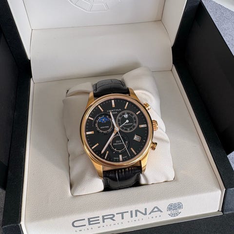 Certina DS Action quartz I titan köpt ca 2017. Håller tiden väldigt bra. Mindre än 20s diff per år.