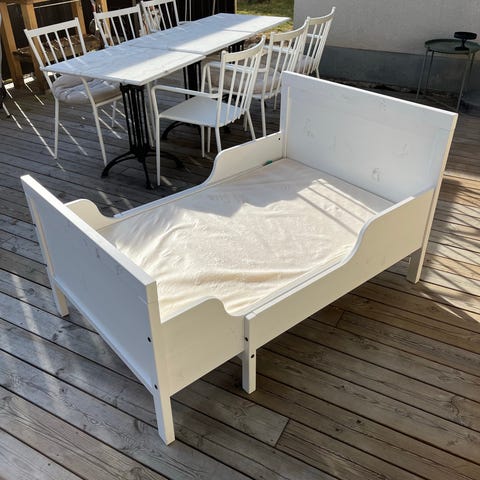 IKEA utdragbar barnsäng vit metall