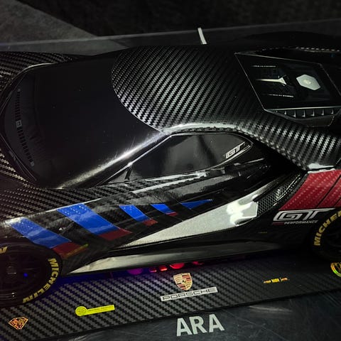 Kåpan till bilen är repad på ovansidan och har en liten spricka höger bak, se bild. Inget som påverkar bilens funktion och syns endast på nära håll.