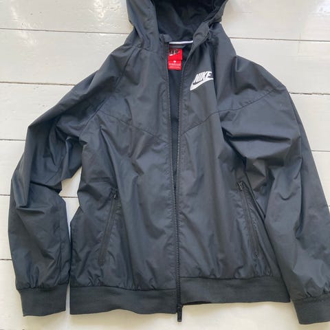 Nike jacka för barn i storlek 128-137, unisexmodell. Jackan är flerfärgad med huva och dragkedja framtill. Tillverkad i polyester. Passar till vardagsbruk och utomhusaktiviteter. Använd av ett barn rökfritt hem.