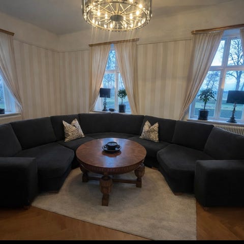 Stor härlig, ren, skön och snygg divansoffa att krypa upp i.