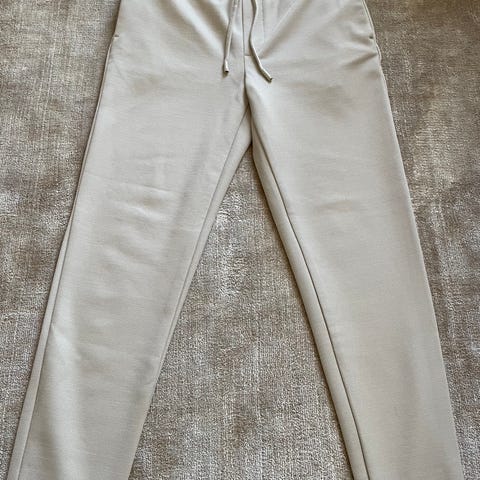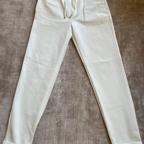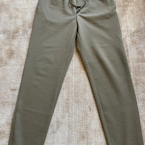 Byxor för herr i storlek S. Tillverkade i polyester och i svart färg. Modellen har resår och dragsko i midjan samt smalare ben. Passar som vardags- eller fritidsbyxa.