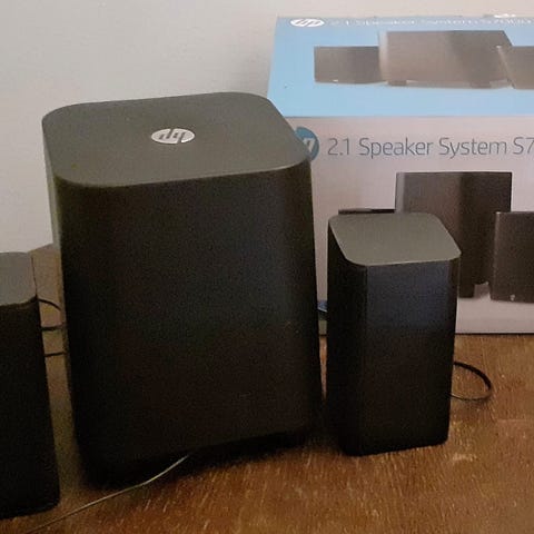 Deltaco högtalarpaket 2.1 med subwoofer i svart utförande. Systemet består av två satellithögtalare och en aktiv subwoofer. På baksidan av subwoofern finns RCA-ingångar för anslutning till exempelvis dator, TV eller annan ljudkälla samt reglage för volym och basnivå. Högtalarna är nätanslutna och sammankopplas med kablar enligt bilderna. Passar för användning vid dator, TV eller annan stationär ljudanläggning där kompakt 2.1‑ljud önskas.