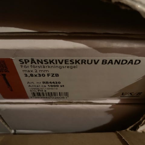 Spånskiveskruv 3,9x30, 1000st, 4paket