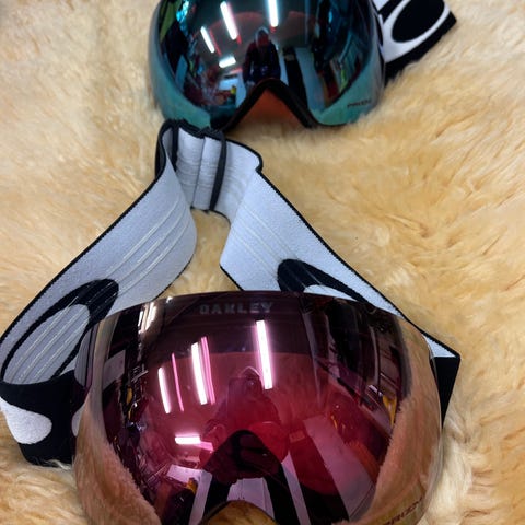 Oakley Prizm skidglasögon med spegellins. Glasögonen har en Prizm-lins med grön och röd ton som är utformad för att förstärka kontraster i snömiljö. Bred, justerbar rem i svart med Oakley-logga. Skum runt ramen för bättre passform mot ansiktet. Förvaringspåse och skyddande fodral från Oakley ingår.