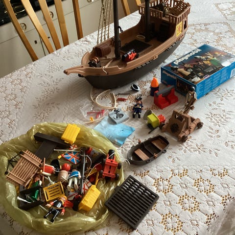 Playmobil piratskepp (5736) med övrigt piratrelaterat.