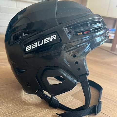 Bauer hockeyhjälm i strl L. Certifiering utgått men lär nog gott och väl räcka till vardagsåkning. Bra skick.