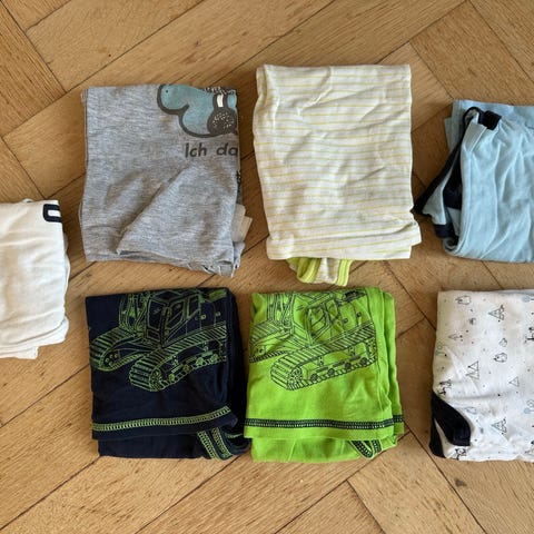 2 kortärmade tröjor, 4 långärmade tröjor, 1 par långbyxor, 1 par kortbyxor. För pojke i storlek 104. En tröja är Marc O’Polo skjorta, en långärmad modell i blå färg. Passar som vardagsskjorta eller till enklare finare tillfällen. Skjortan har krage och knäppning framtill.