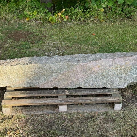 2 st granitstolpar 1.70 m långa. 3 st granitstolpar 1 m långa. Ca 150-170 st storgatsten