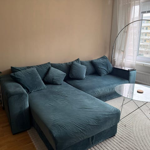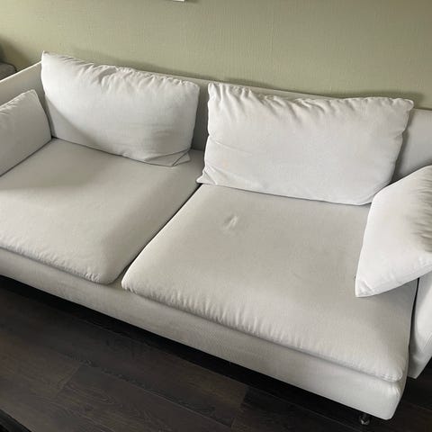 Mammut-soffa i två moduler från Sweef i husets tyg, i färgen Ivory 400. Fint skick, med minimal slitage, inga nopprar. Avtagbar klädsel som kan tvättas i 30 grader.