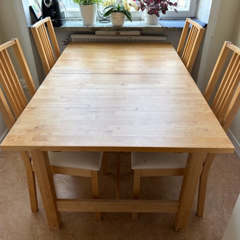 Utdragbart rött köksbord och stolar