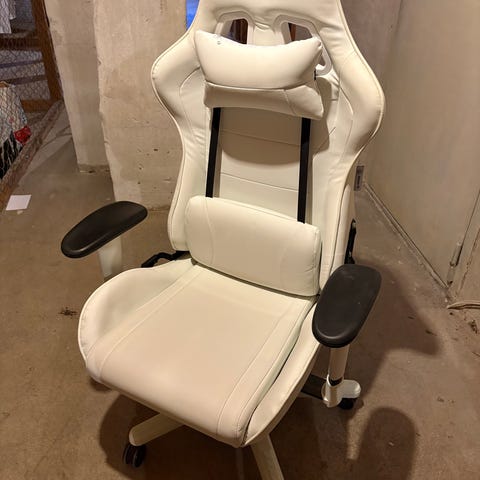 Stolen har lite fläckar vid handtagen som inte gå bort. Man kan luta sig bakåt med den och samt är väldigt bekväm och felfri övrigt.