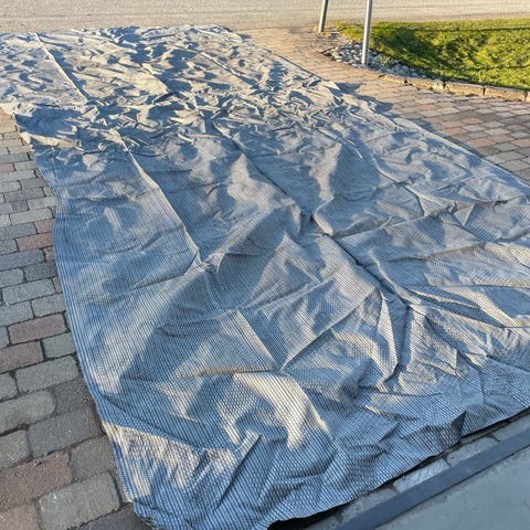 Förtältsmatta 6x3 meter plus en extra bit för att justera längden med(den extra biten ligger inrullad i den stora rullen) färg på mattan enligt bild