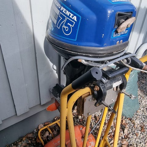 15hk. tvåtaktare med tank. Den har inte använts på två år så den behöver förmodligen en översyn innan den används igen.