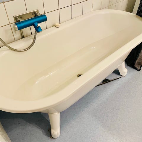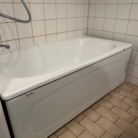 Fristående badkar i vitt. Höjd 52 cm, bredd 70 cm och längd längd 158 cm.