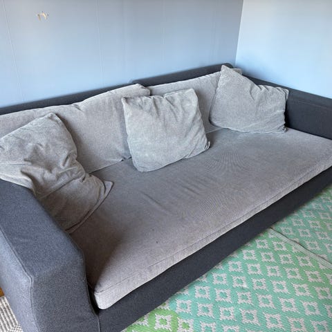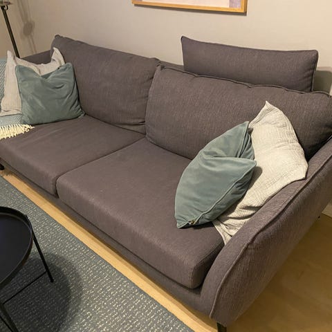 Soffan är i bra begagnat skick med normalt slitage. Inga större skador, men några mindre märken kan förekomma.